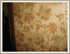As you see in my photos below, if I am hanging wallpaper over paint, all my jobs will be patched if needed. Wall sizing will be applied to all of my jobs. I use clear strippable paste even if the wall covering is pre-pasted. I will also wallpaper your light switch covers, outlet covers, and vent covers if you desire.